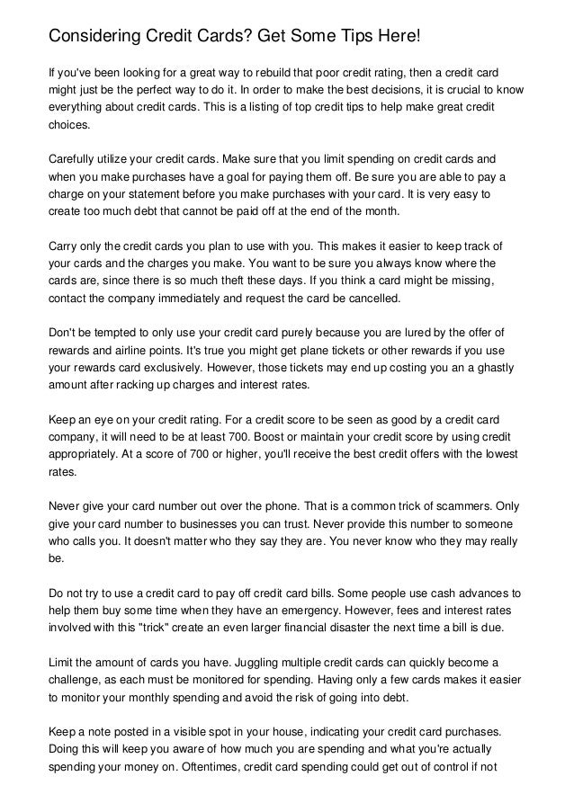 Charge card use in britain can cause money problems just as it does everywhere in the entire world. credit card tips for beginners Folks in the united kingdom owe tens of billions of kilos in bank card debt at an curiosity charge of about sixteen% which determine keeps getting better and better. Debts about 2500 lbs . are common to ten p.c of your men and women in British isles and combined with higher interest rates, this figure is near not possible to get to come back down.